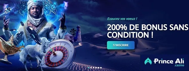 Le premier bonus alléchant de Prince Ali est son offre de bienvenue, sans Wager. Il s’agit d’un bonus de 200% jusqu’à 1000€, accessible dès 10 euros de dépôt.